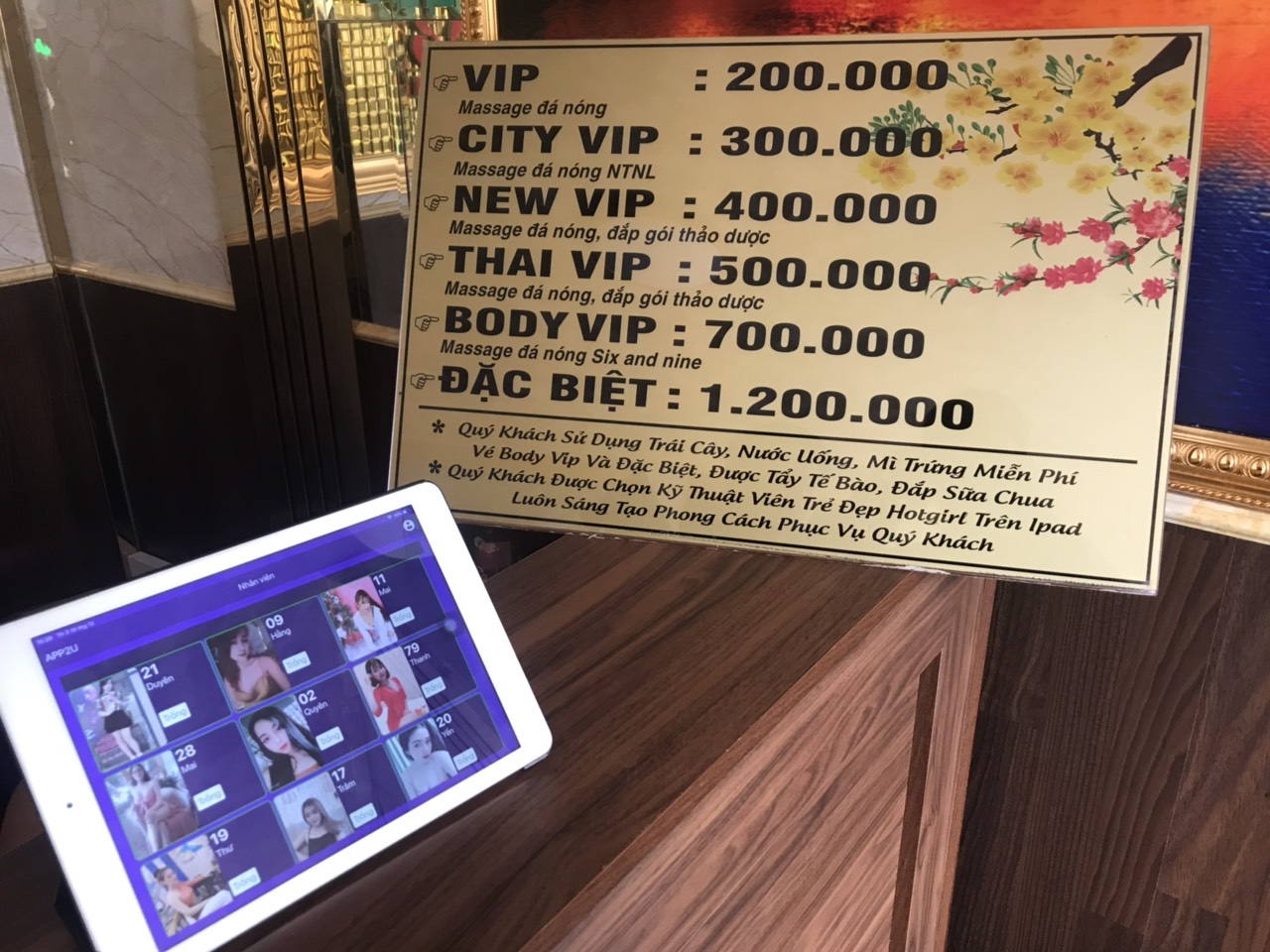 Quý anh được miễn phí Bia , trái cây và nước uống theo dịch vụ